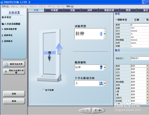 - 點擊試驗部分里的新試驗,選擇相應的試驗方案,輸入試樣的原始用戶參數(如尺寸。厚度等)